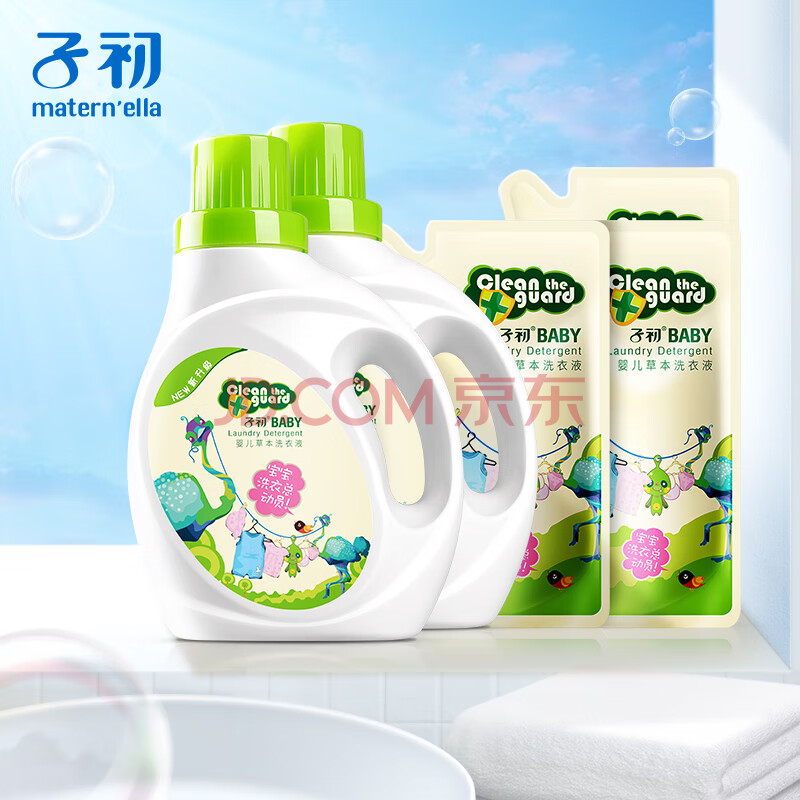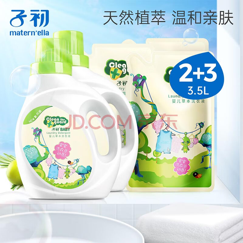 商品相册:子初婴儿洗衣液儿童洗衣液婴幼儿宝宝专用洗衣液套装1L*2瓶+500ml*3袋第1张/共6