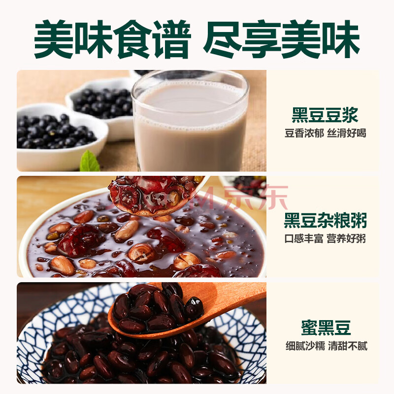 商品相册:北纯 有机黑豆2.5斤/袋(富含膳食纤维 东北绿芯大豆 杂粮 可打豆浆)第