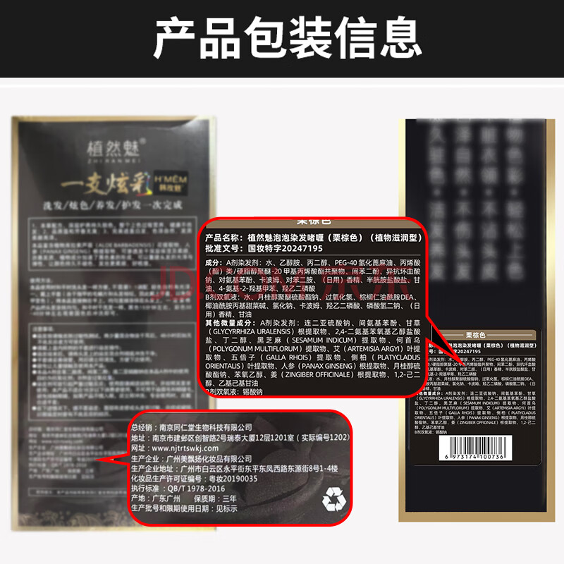 商品相册:韩玫魅南京同仁堂一洗彩染膏植物盖白发纯栗棕色男女士泡泡染发剂第