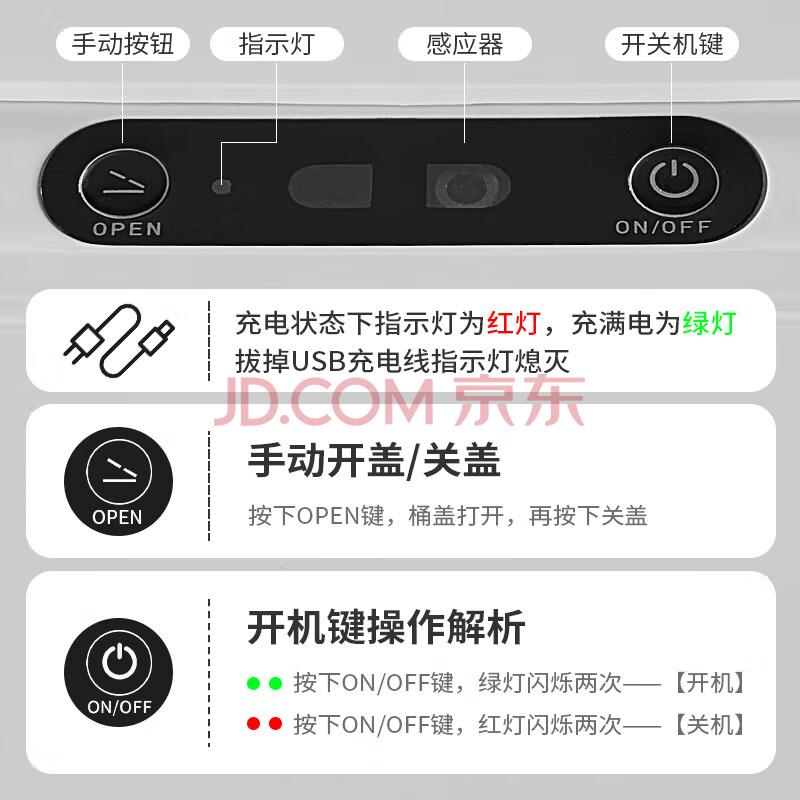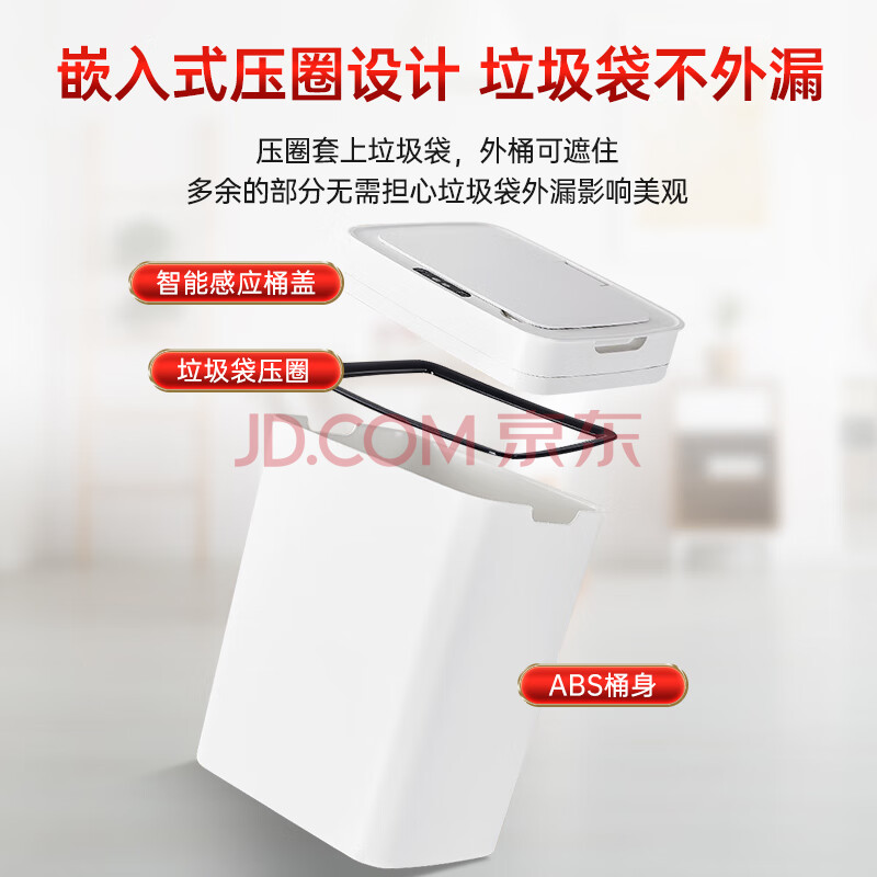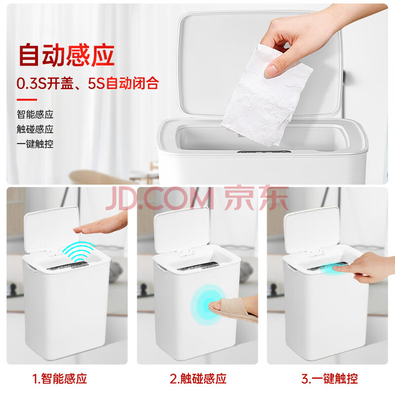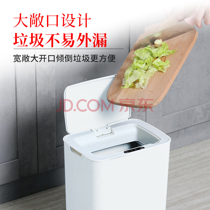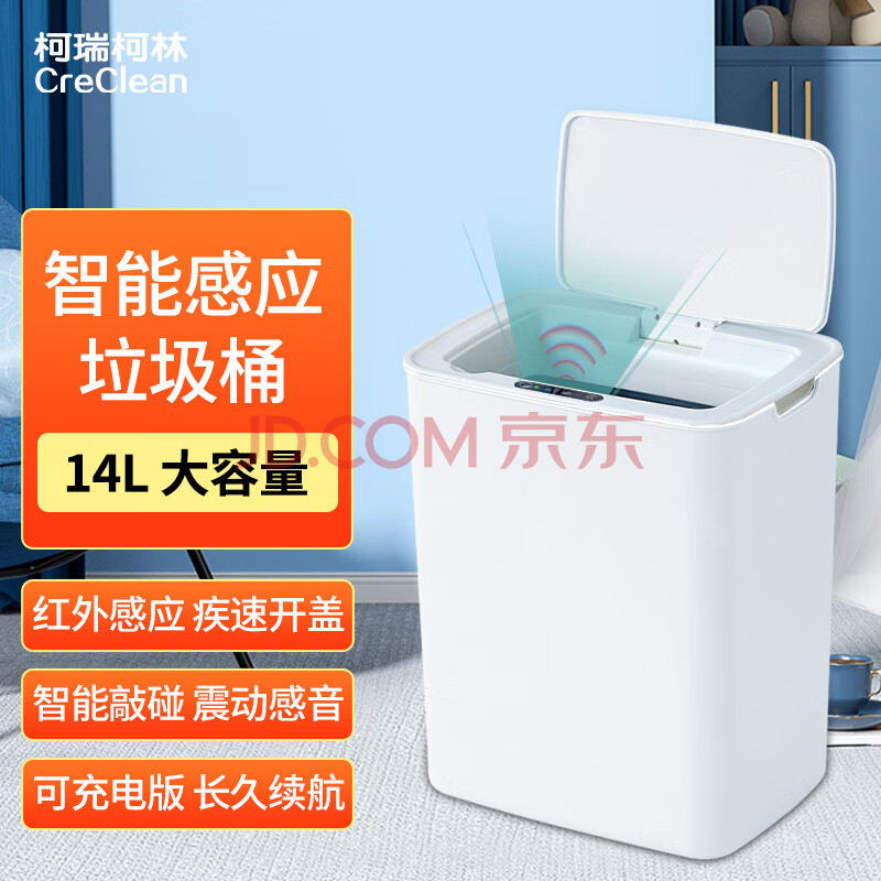 商品相册:柯瑞柯林(CreClean)智能垃圾桶带盖感应 白色充电款大号14L 办公室家用 TC001W第