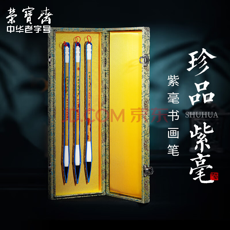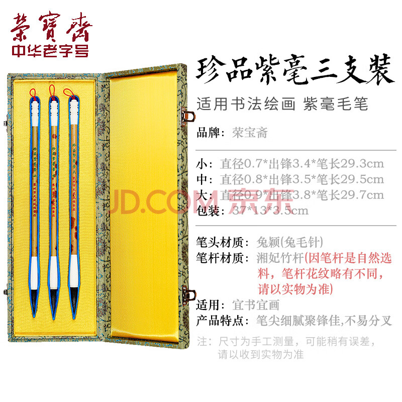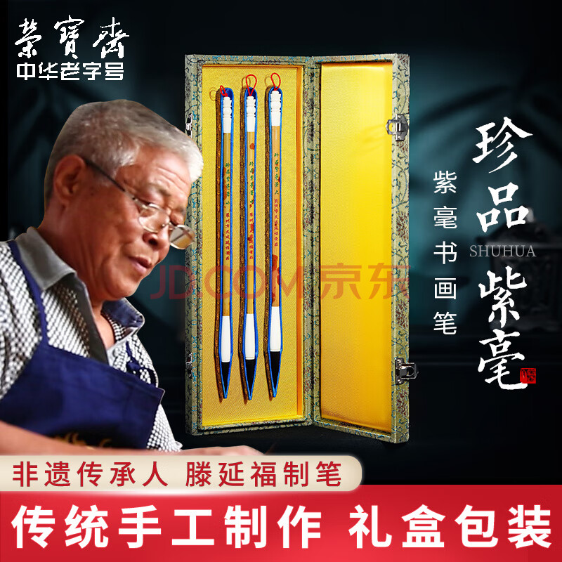商品相册:【全网低价】荣宝斋 毛笔套装 紫毫传统湘妃竹笔杆文房四宝书法国画行篆隶楷手作软笔高档礼盒 珍品紫毫第