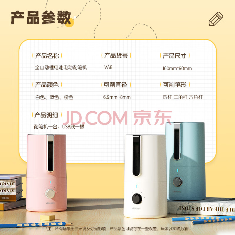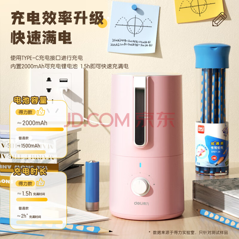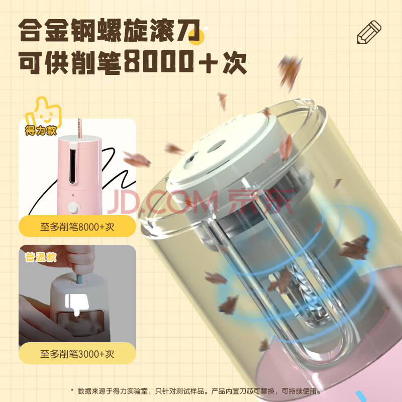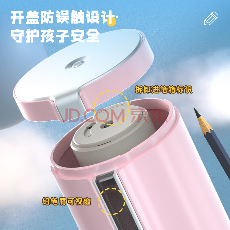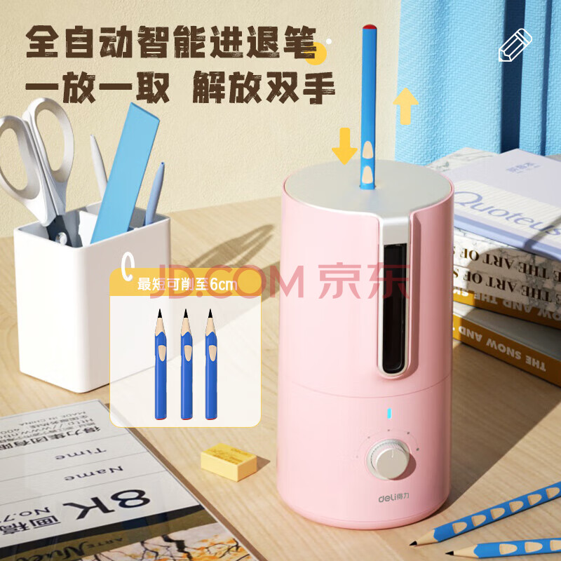 商品相册:得力(deli)全自动电动转笔刀削笔器卷笔刀 可削8mm三角笔杆六角彩铅铅笔削笔刀学生电动文具生日开学礼物粉第