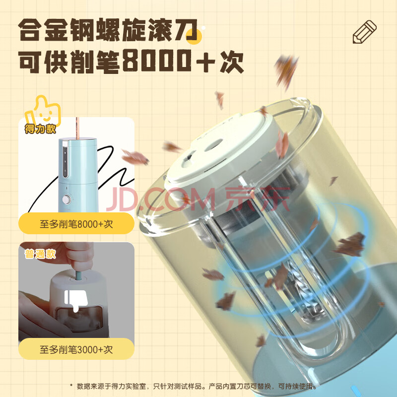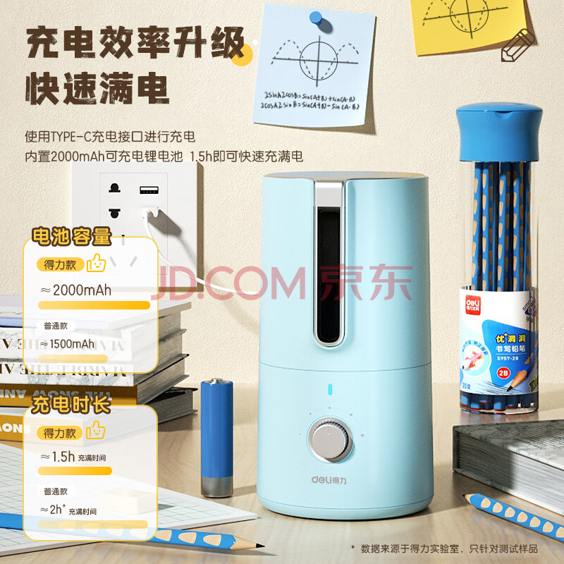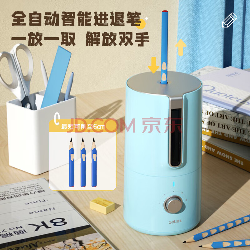 商品相册:得力(deli)【全网低价】全自动电动转笔刀削笔器卷笔刀可削8mm三角笔杆六角彩铅铅笔 文具考试生日开学礼物蓝第