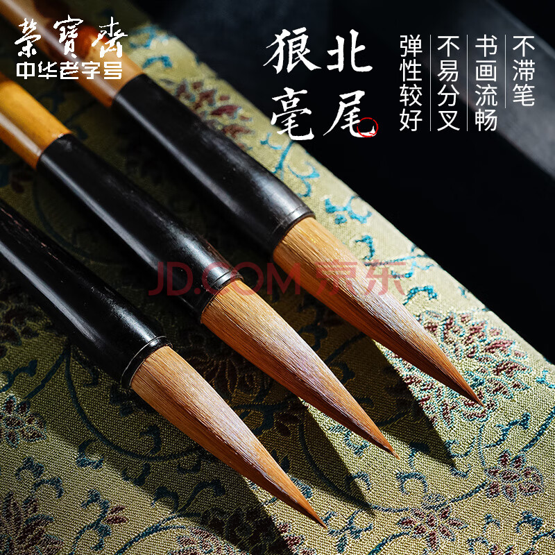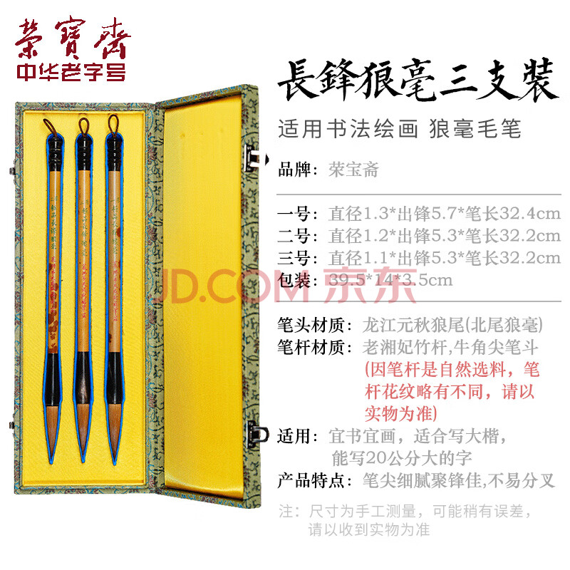 商品相册:【全网低价】荣宝斋 毛笔套装 北尾狼毫传统牛角老湘妃竹笔杆文房四宝行篆隶楷手作软笔高档礼盒 长锋狼毫第