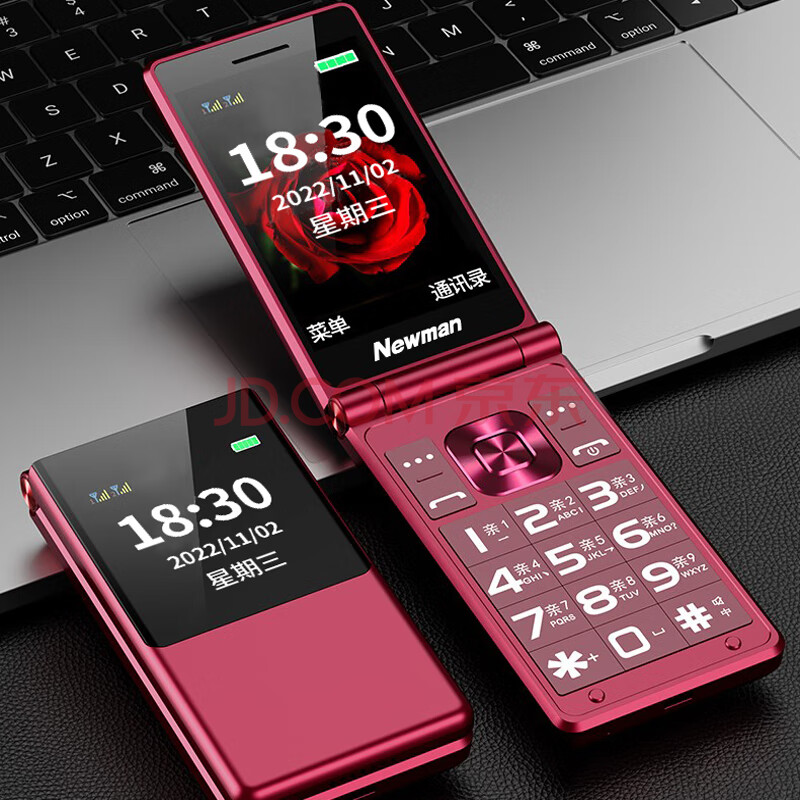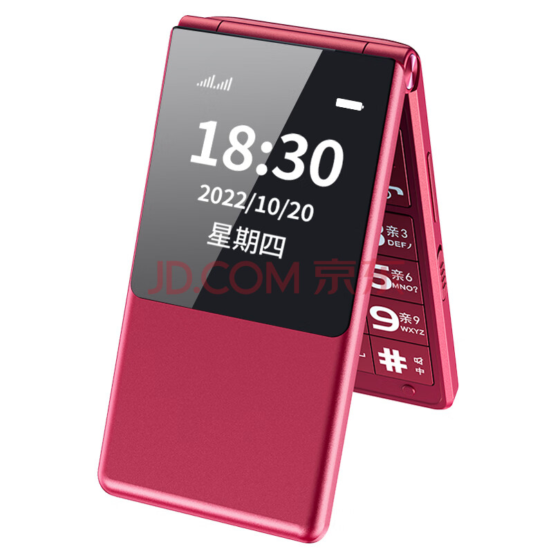 商品相册:纽曼W69 酒红色 2.8英寸4G全网通翻盖老人手机 双屏双卡双待大字大声音大按键老年机 学生备用功能机第