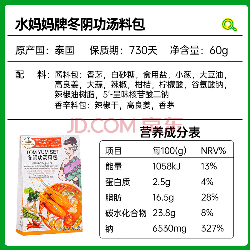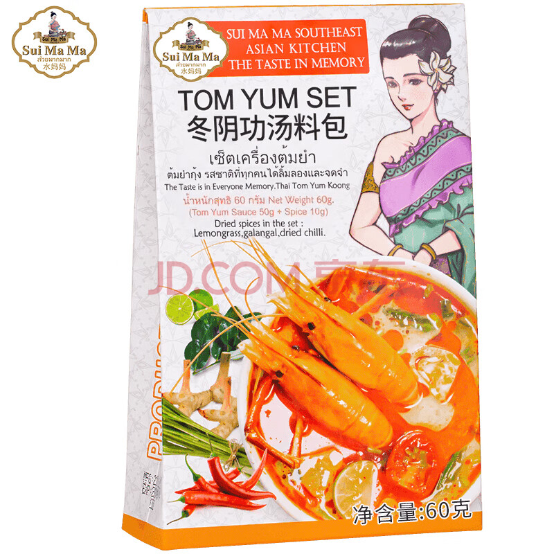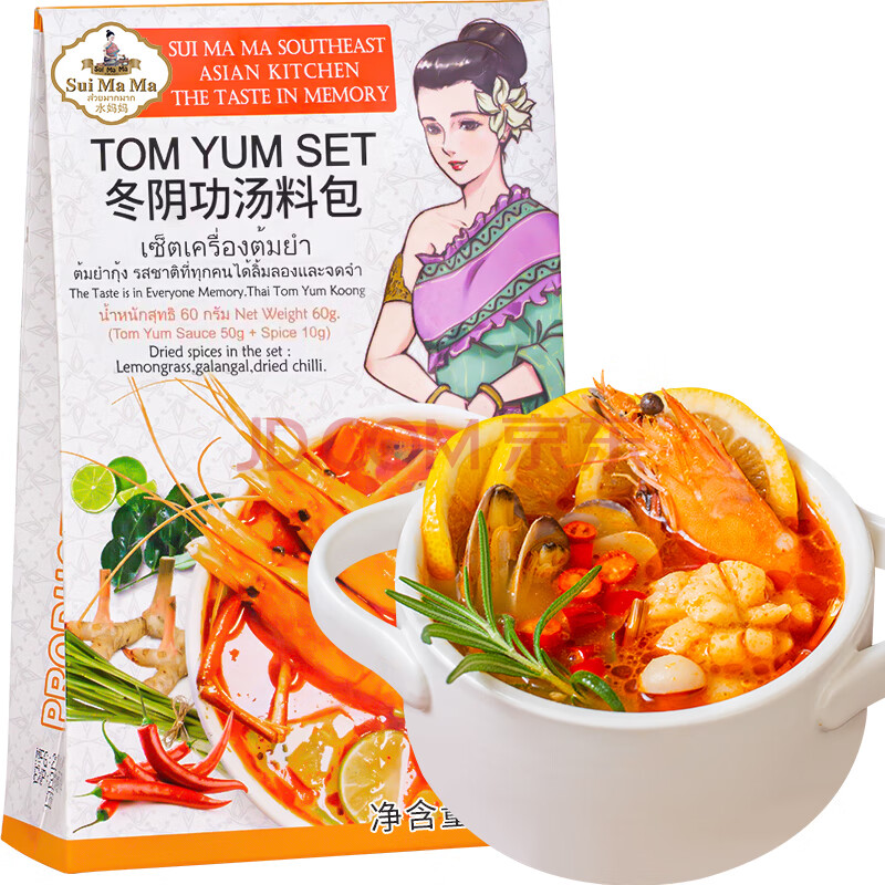 商品相册:水妈妈泰国进口 冬阴功汤料包 火锅底料酱包 酸辣酱料香辛料包调料 60g第1张/共6