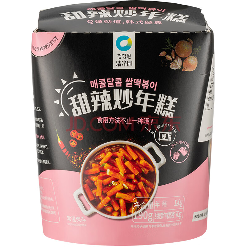 商品相册:清净园 杯装甜辣炒年糕条(含酱料包) 韩式风味 微波速食方便食品 190g第1张/共8