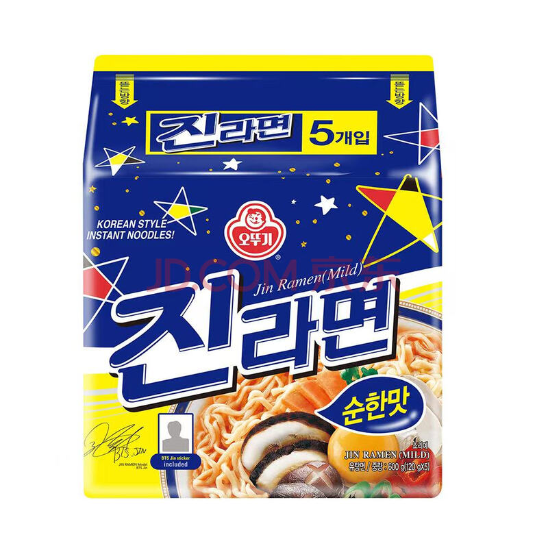 商品相册:不倒翁韩国进口 原味金拉面120g*5包 潘帅同款泡面 韩式方便面袋装第