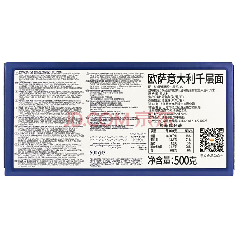 商品相册:欧萨意大利原装进口千层面 千层皮宽面意粉意面特色薄片宽面500g第