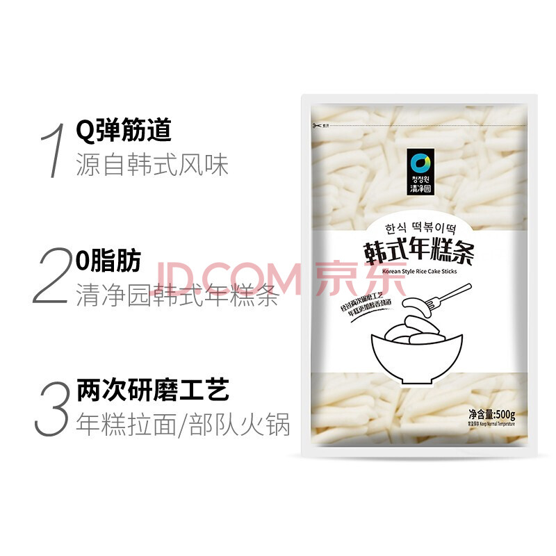 商品相册:清净园 常温年糕条500g 韩式风味辣炒年糕条 部队火锅食材 软糯可口第
