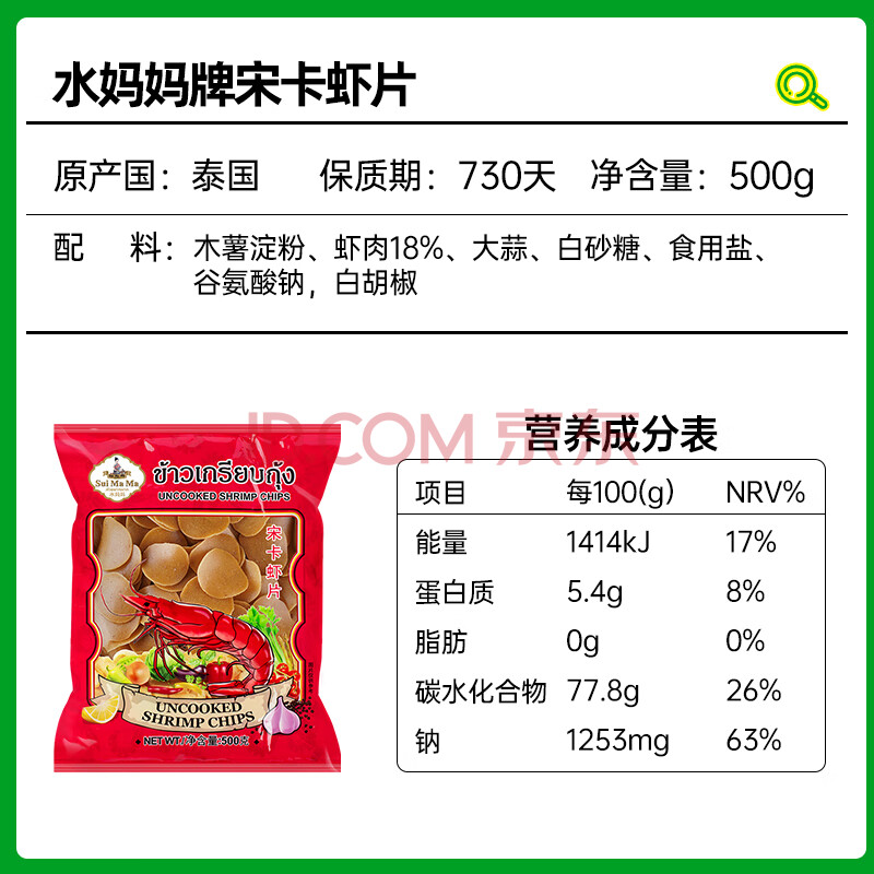 商品相册:水妈妈泰国虾片500g 泰国进口 自己炸 油炸大虾片半成品 龙虾片零食第