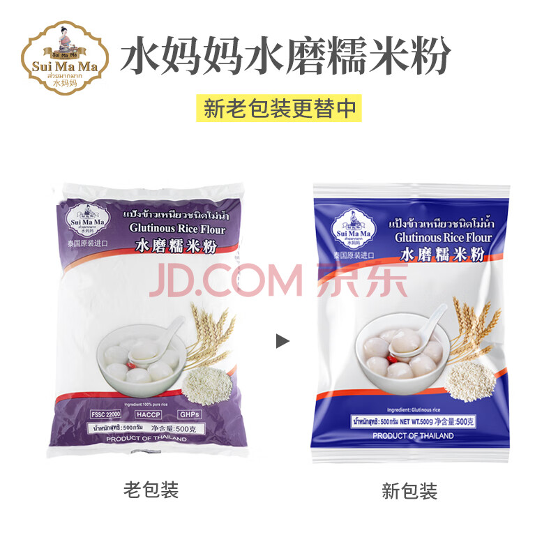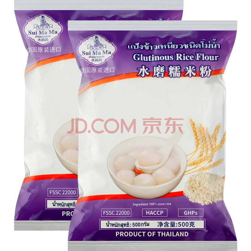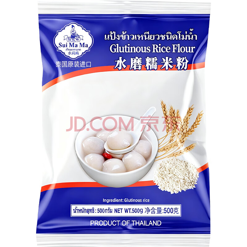 商品相册:水妈妈泰国进口 水磨糯米粉 汤圆元宵糯米糍粑雪媚娘冰皮月饼500g*2袋装第