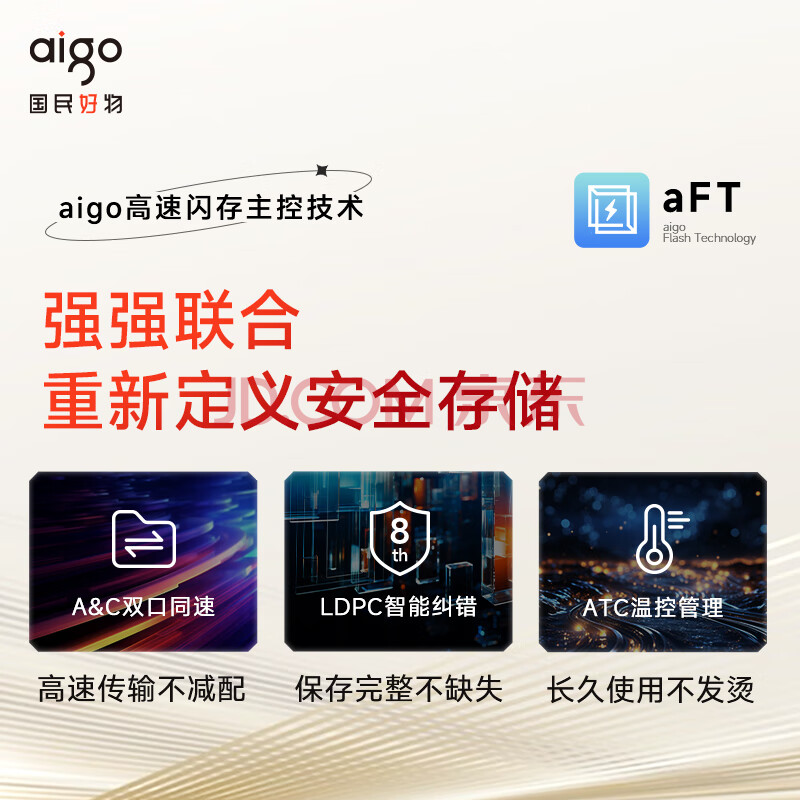 商品相册:爱国者(aigo)256GB 固态U盘 双接口手机电脑两用U盘 Type-C/USB3.2 读速高达520MB/s U393 大容量高速优盘第