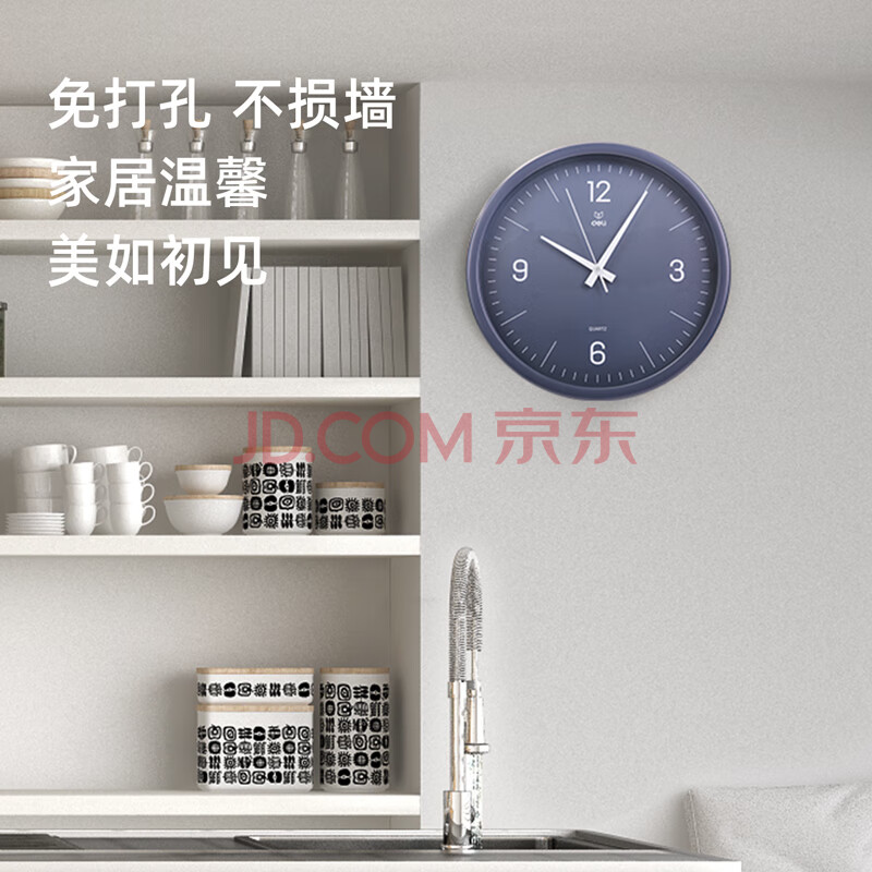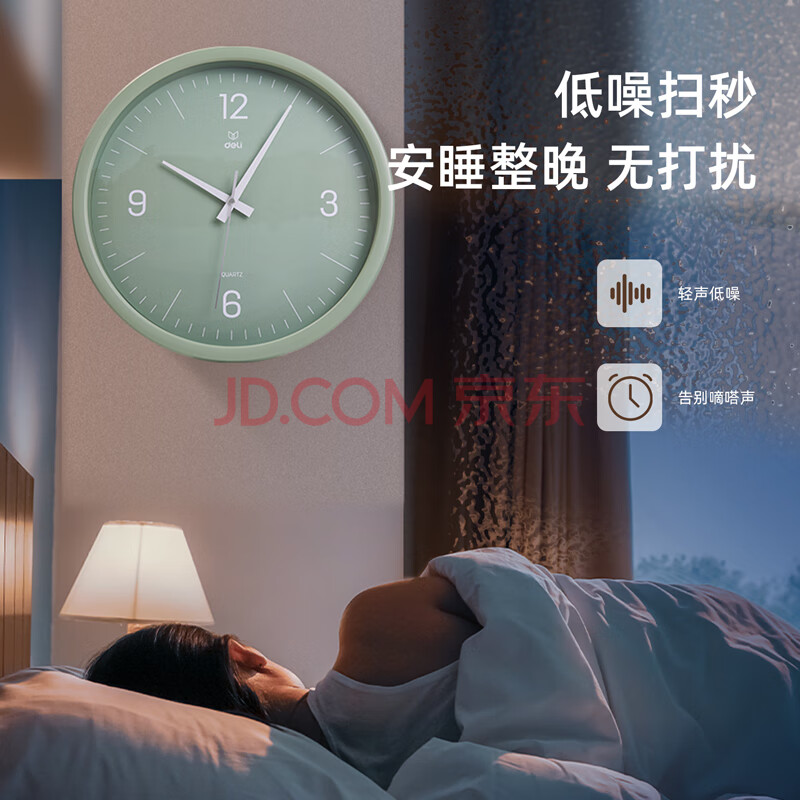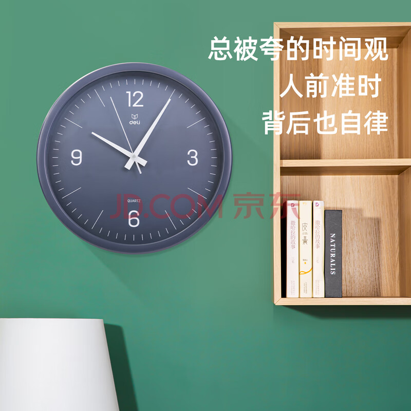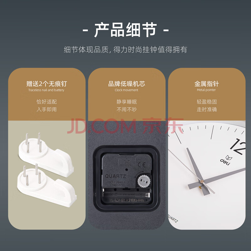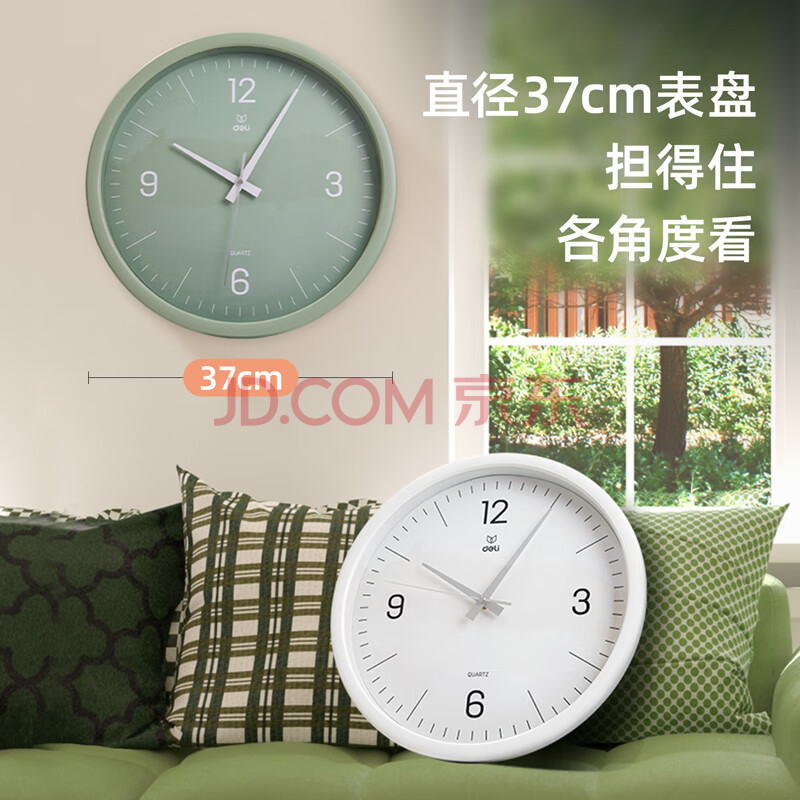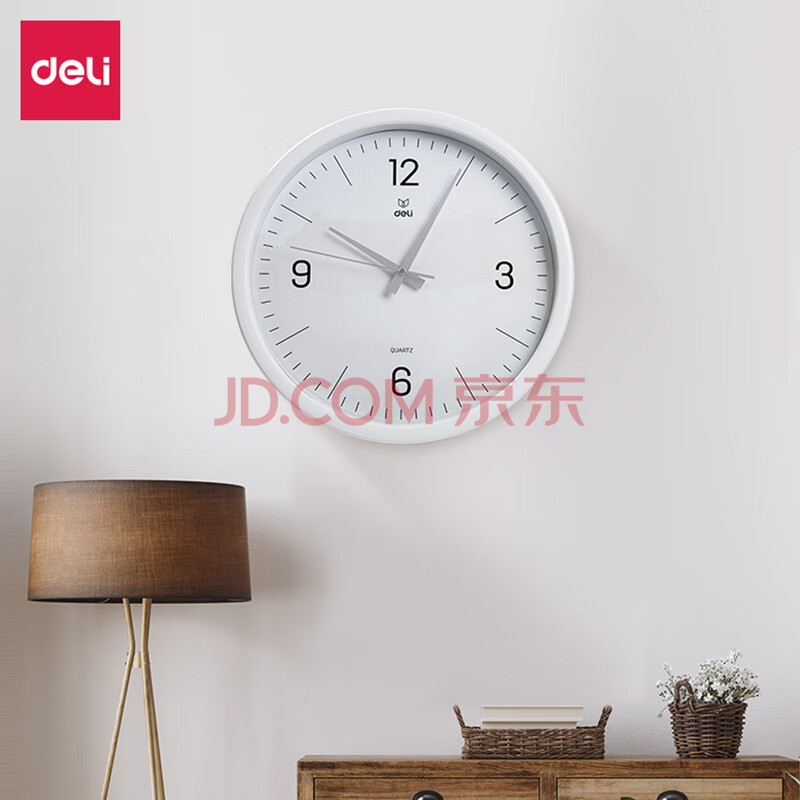 商品相册:得力挂钟 简约时尚客厅挂钟 卧室石英钟圆形 37cm 9006S-WH第