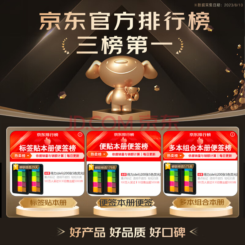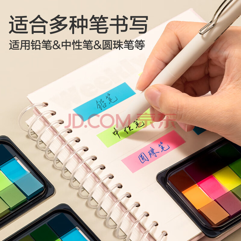 商品相册:得力(deli)200张5色荧光膜指示标签贴44*12mm抽取式索引便利贴便签条记事贴9069第