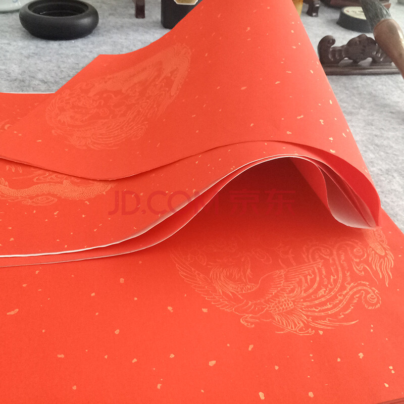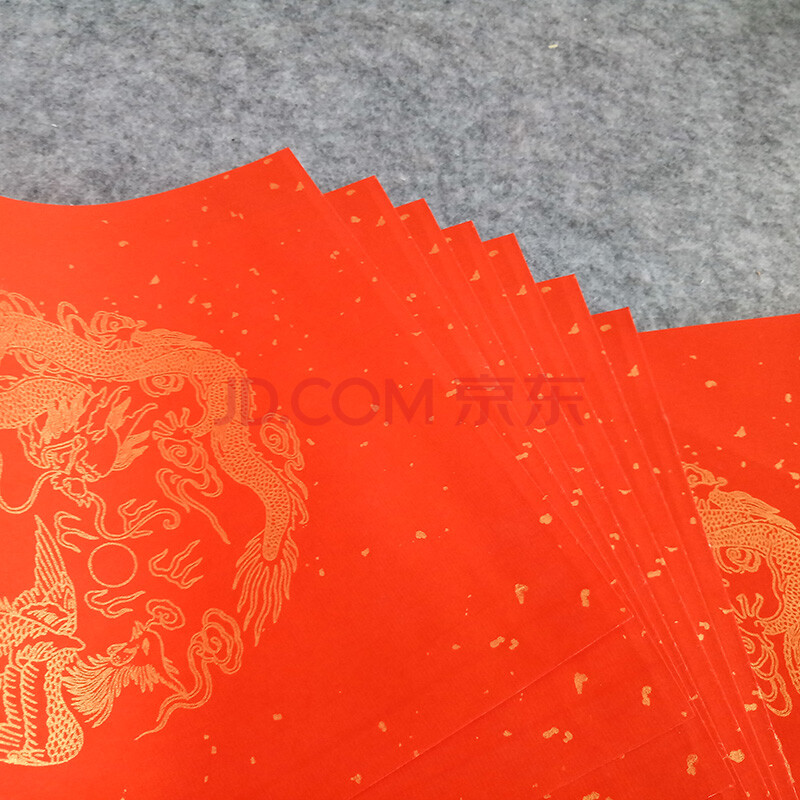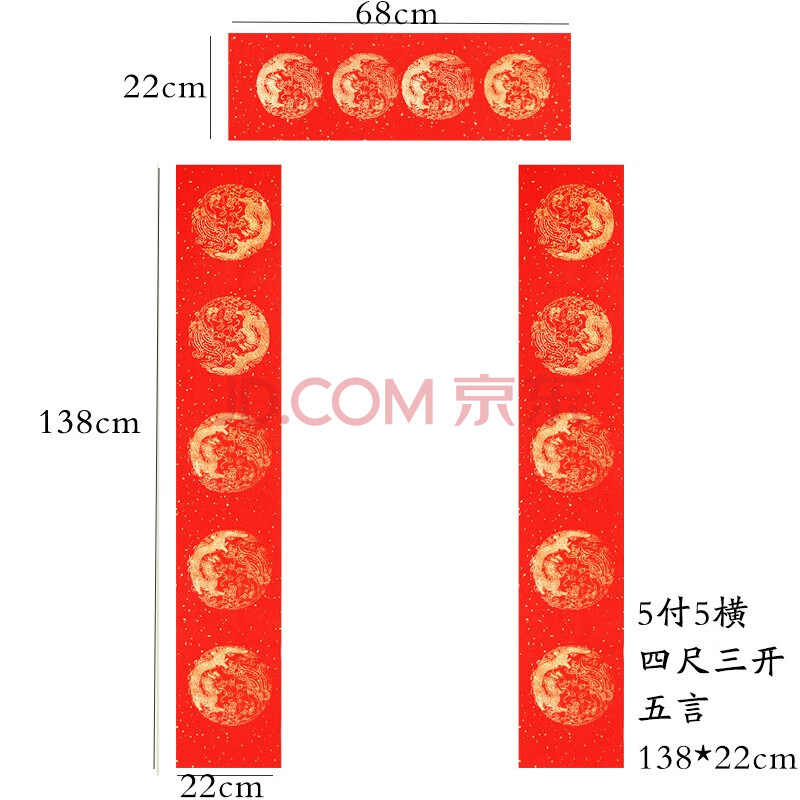商品相册:芬尚 万年红宣纸 五言对联春联 龙凤洒金 四尺三开春节手写对联138*22cm/一包五副含横批第