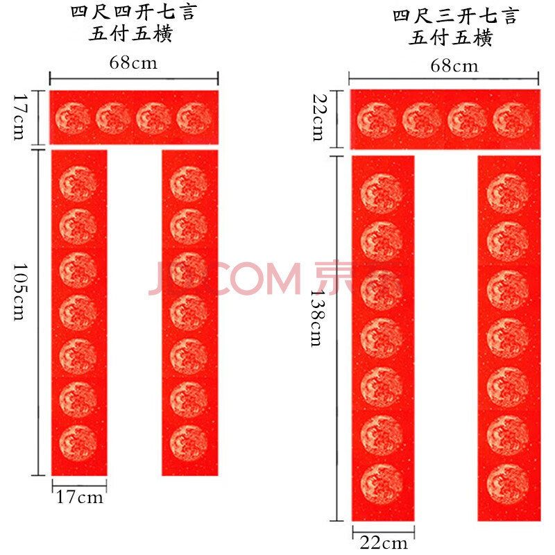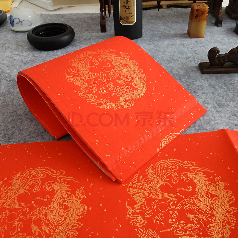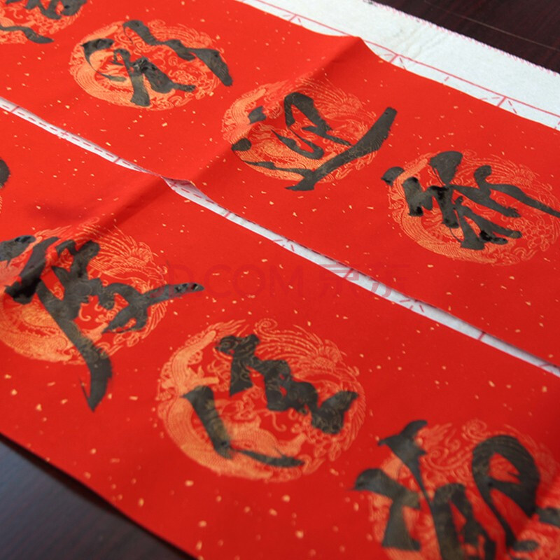 商品相册:芬尚wnh1505万年红宣纸 七言对联春联 龙凤洒金 四尺三开春节手写对联红纸138*22cm一包含五副五横第