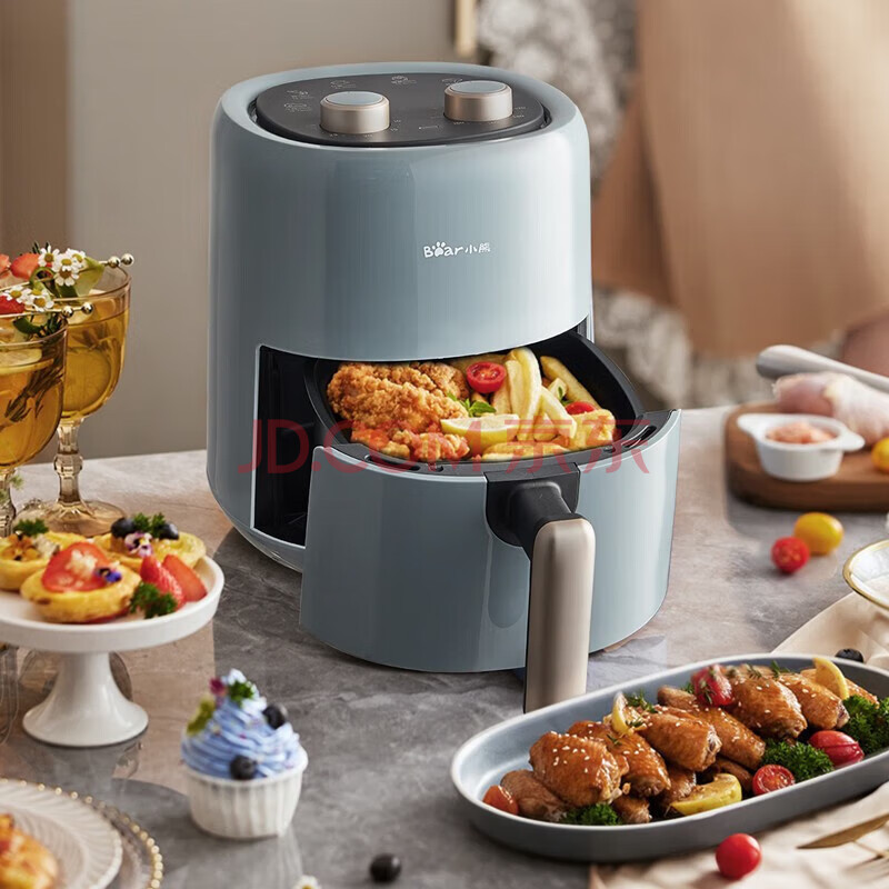 商品相册:小熊(Bear)空气炸锅 家用多功能3L 微电脑触控电炸锅 可拆卸易清洗 蓝灰色QZG-E12W5(QZG-E14Q5升级版)第