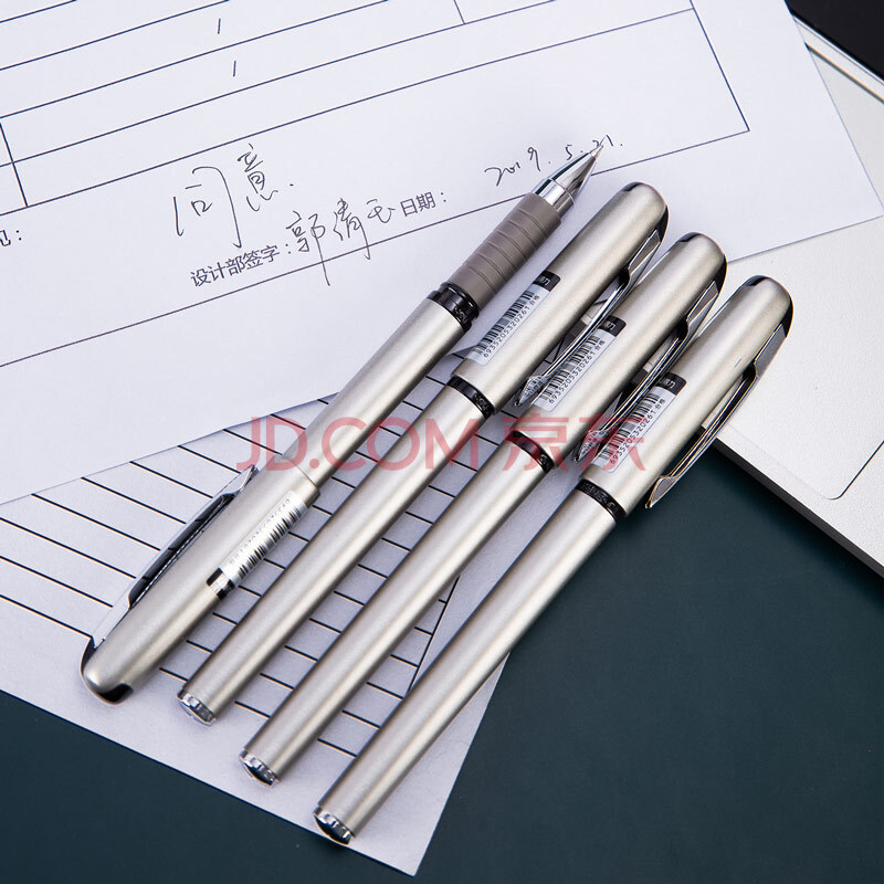 商品相册:得力(deli)0.7mm黑色子弹头拔帽中性笔水笔签字笔 办公用品 12支/盒S26第