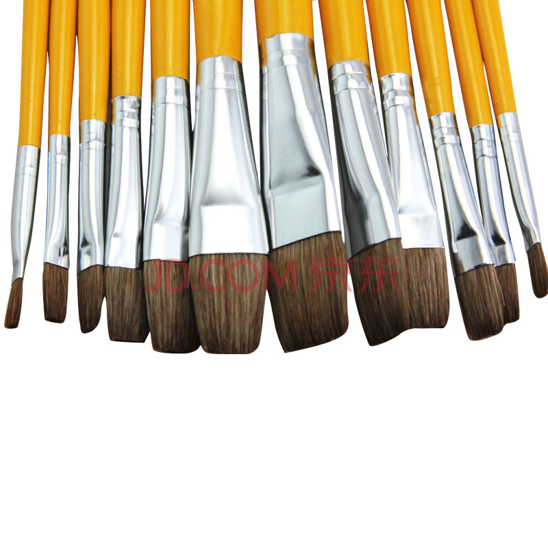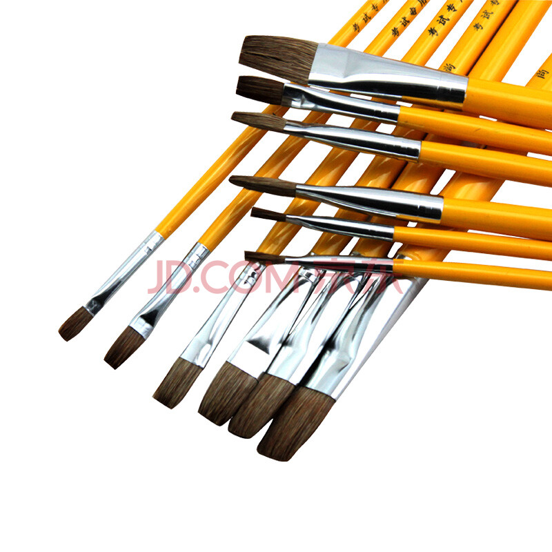 商品相册:【全网低价】芬尚 狼毫平头水粉笔 美术绘画用品专用画具画材儿童油画笔丙烯画笔学生美术颜料画笔 单号6支装第1张/共4