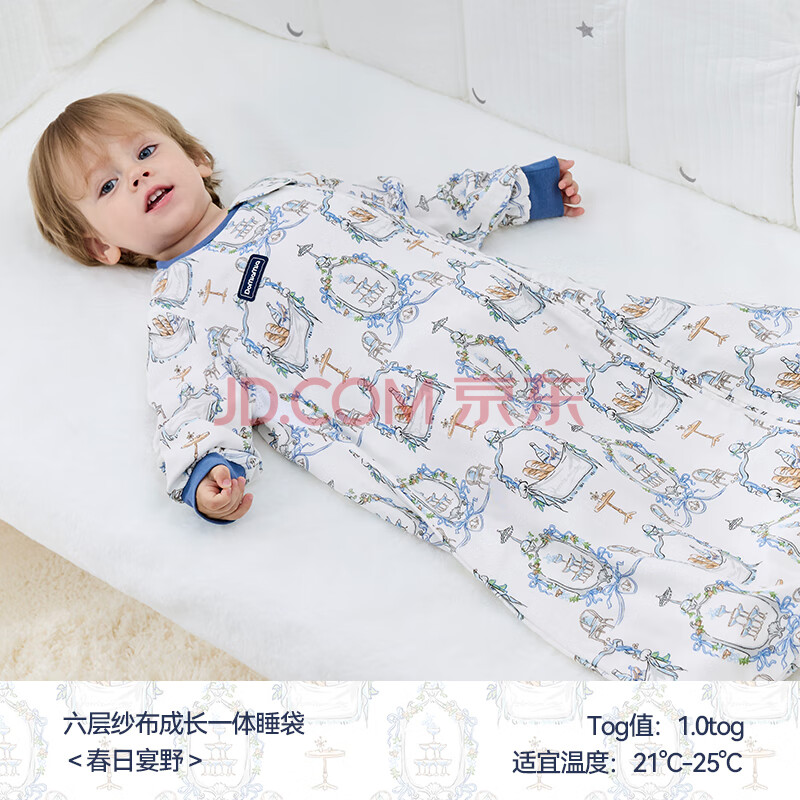 商品相册:DOMIAMIA婴儿睡袋一体式睡袋四季通用二合一防踢被纱布六层 春日M 21-25°第