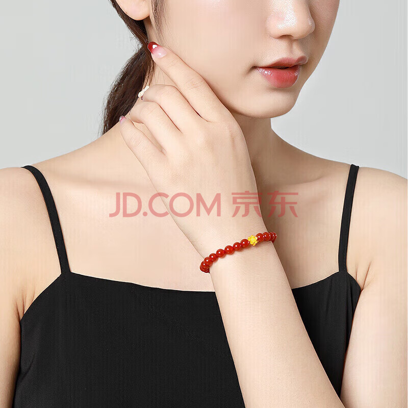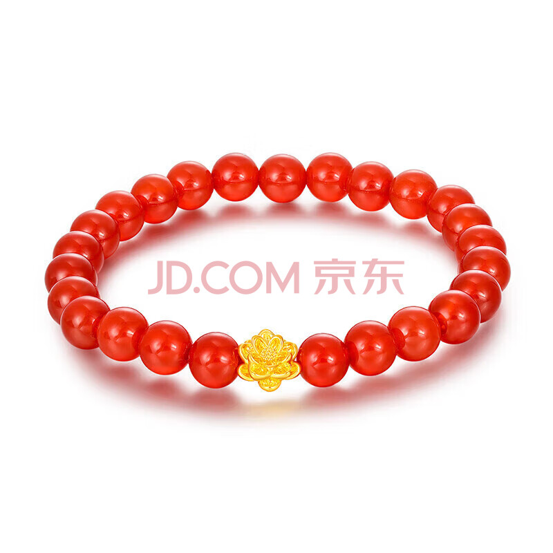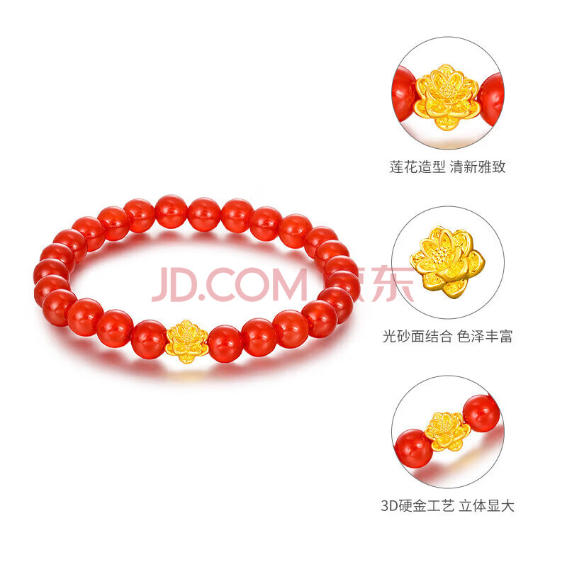 商品相册:梦金园黄金转运珠足金莲花3D硬金路路通手链红玛瑙手串第