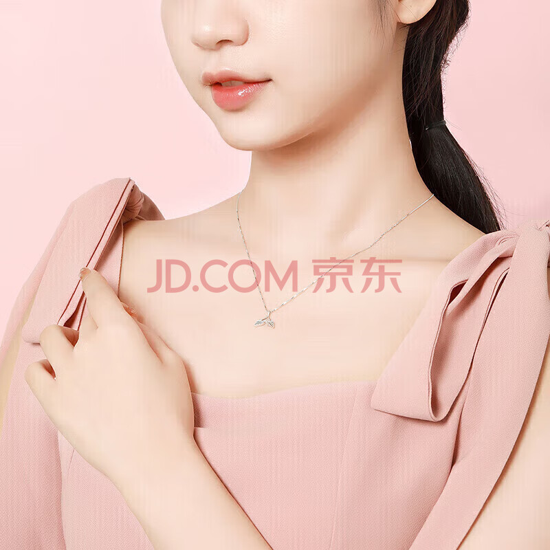 商品相册:梦金园 S925银项链 美人鱼尾套链时尚贝母车花锁骨链女款生日礼物第