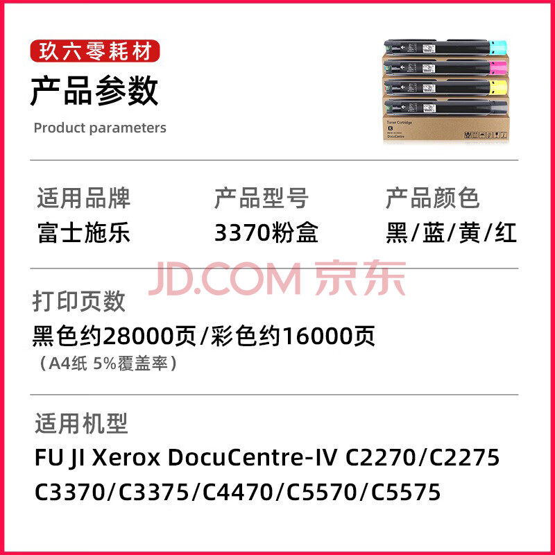 商品相册:玖六零富士施乐C5575粉盒适用C5570 C3375 C3370 C5571 2270打印机硒鼓碳粉盒IV/V-C7775 2275 4475复印机墨盒黑色第