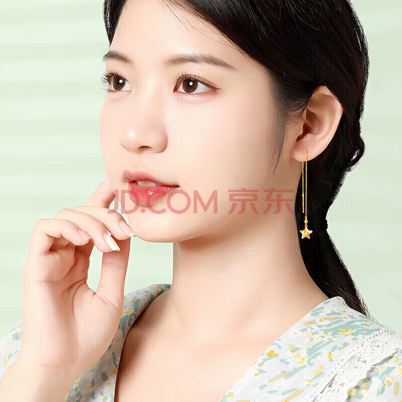 商品相册:梦金园18K金耳线AU750花丝星星耳线彩金流苏耳坠第