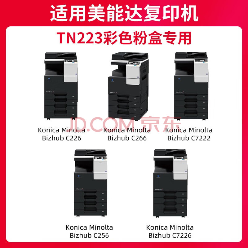 商品相册:京呈TN223适用柯尼卡美能达复印机Bizhub C226粉盒 C266 C256 C283 C0722 C7222 C7226打印机墨盒碳粉硒鼓 四色第