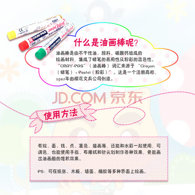 商品相册:樱花(SAKURA)油画棒蜡笔 中粗型精致36色套装 儿童安全绘画画笔美术彩绘工具软性油性粉彩棒玩具礼物第
