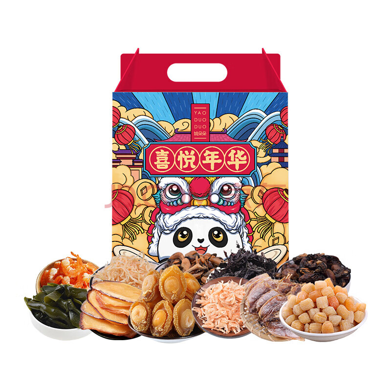 商品相册:姚朵朵 干货礼盒装1385g 淡干菜 海蛎干 有机紫菜 银鱼干 干贝 金钩海米 带膏芒种虾皮 墨鱼第