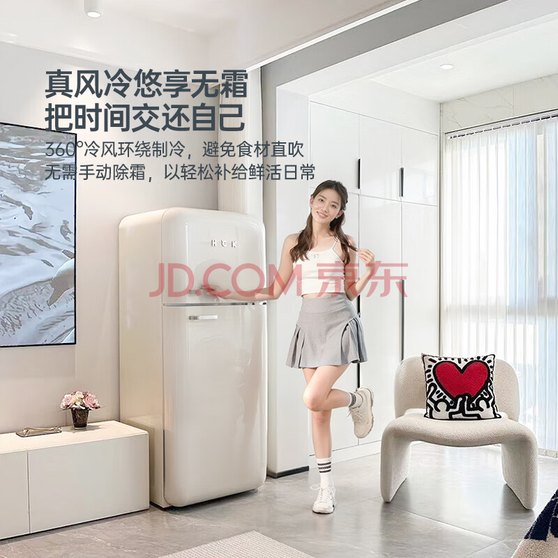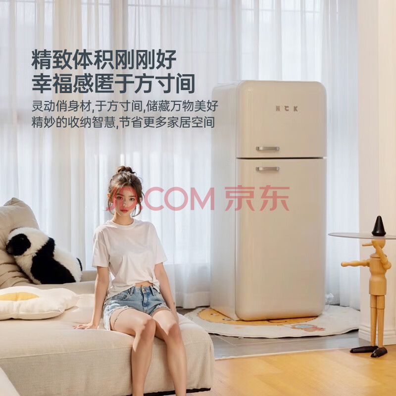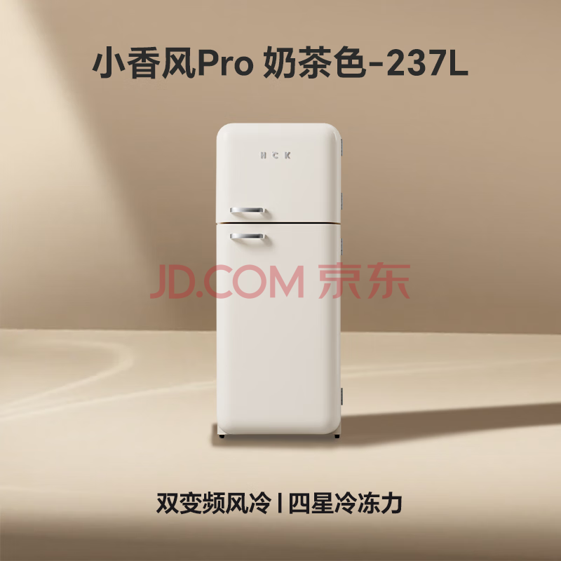 商品相册:HCK哈士奇小香风Pro系列237升双门复古冰箱一级能效变频风冷客厅低噪纤薄易嵌BCD-253RS-奶茶色第