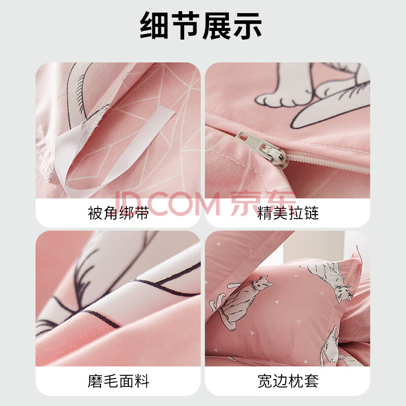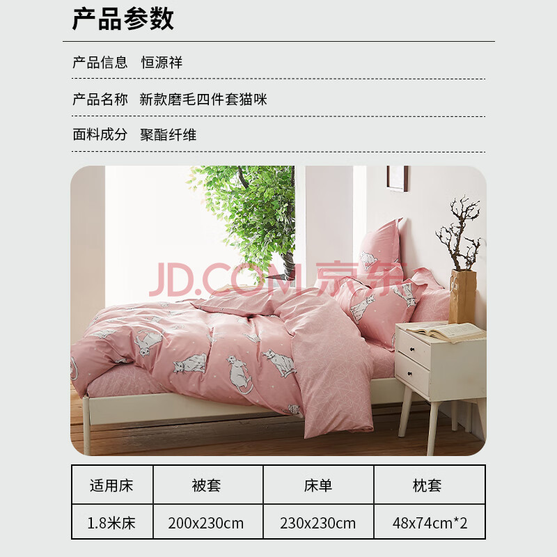 商品相册:恒源祥四件套全涤磨毛加厚耐用超软亲肤床品套件秋冬(被套2*2.3m)猫咪第