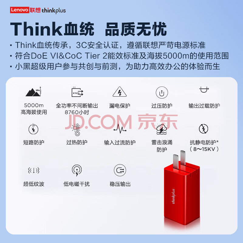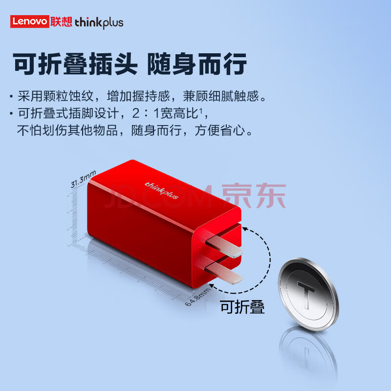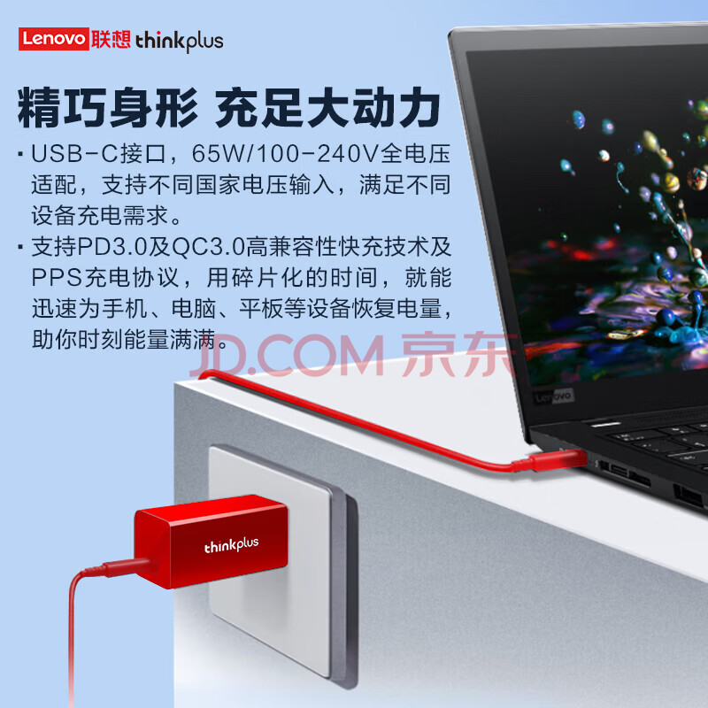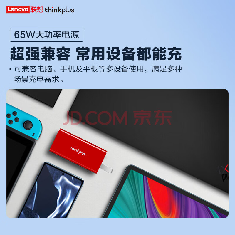 商品相册:ThinkPad联想thinkplus口红电源65W氮化镓充电器 红 小巧便携 ThinkBook/联想笔记本/手机/平板电源适配器第