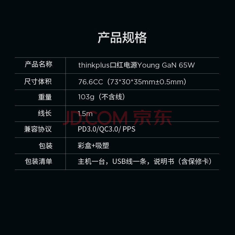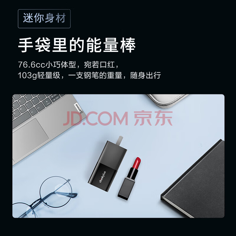 商品相册:ThinkPad联想thinkplus 65W氮化镓Type-c快充便携口红电源套装 苹果15手机笔记本电脑华为小米 黑第