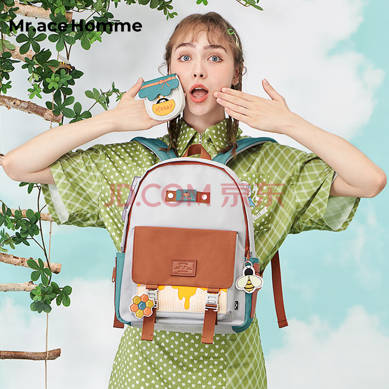 商品相册:Mr.ace Homme蜜蜂系列 双肩包女学生电脑背包小众书包大容量 小蜜蜂+零钱包第