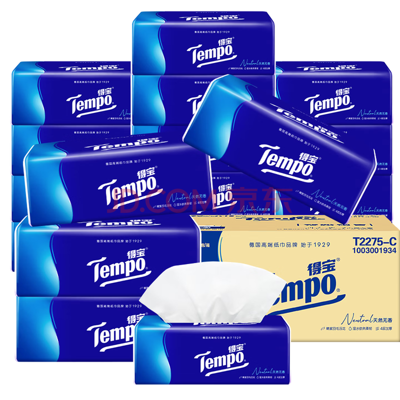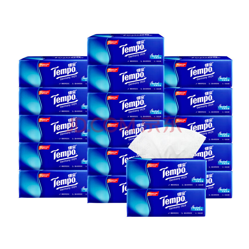 商品相册:得宝(Tempo)抽纸整箱装90抽软抽4层18包抽纸面巾纸餐巾纸(无香)第