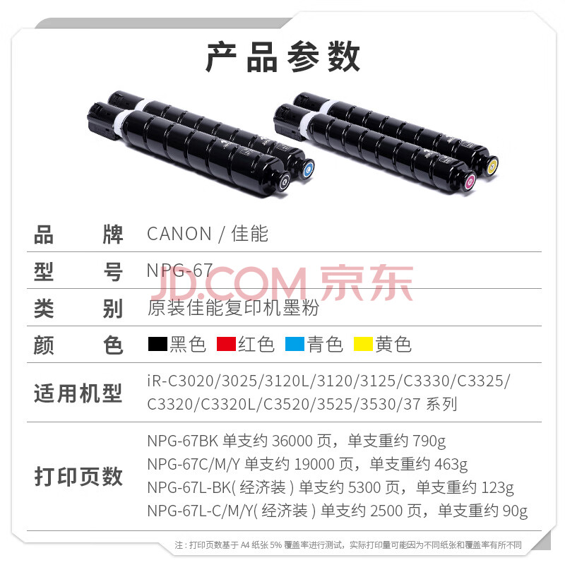 商品相册:佳能原装NPG-67L经济装青色C墨粉盒适用3222/3125/3226打印机耗材3120/3130/3826/3530/3725系列复合机第