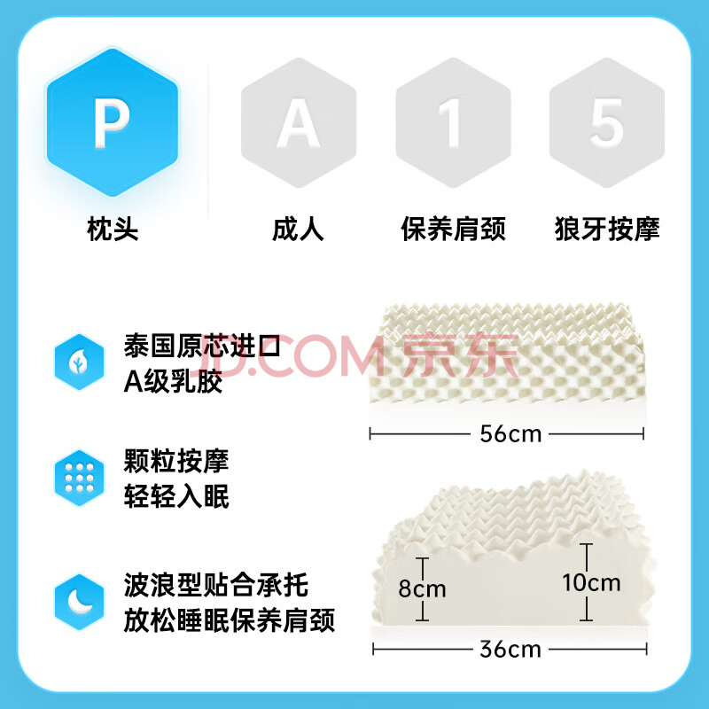 商品相册:THAISEN泰国原装进口乳胶枕头芯 94%含量 成人睡眠颈椎枕 波浪按摩橡胶枕第