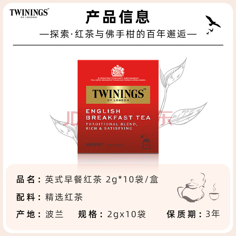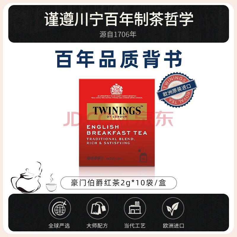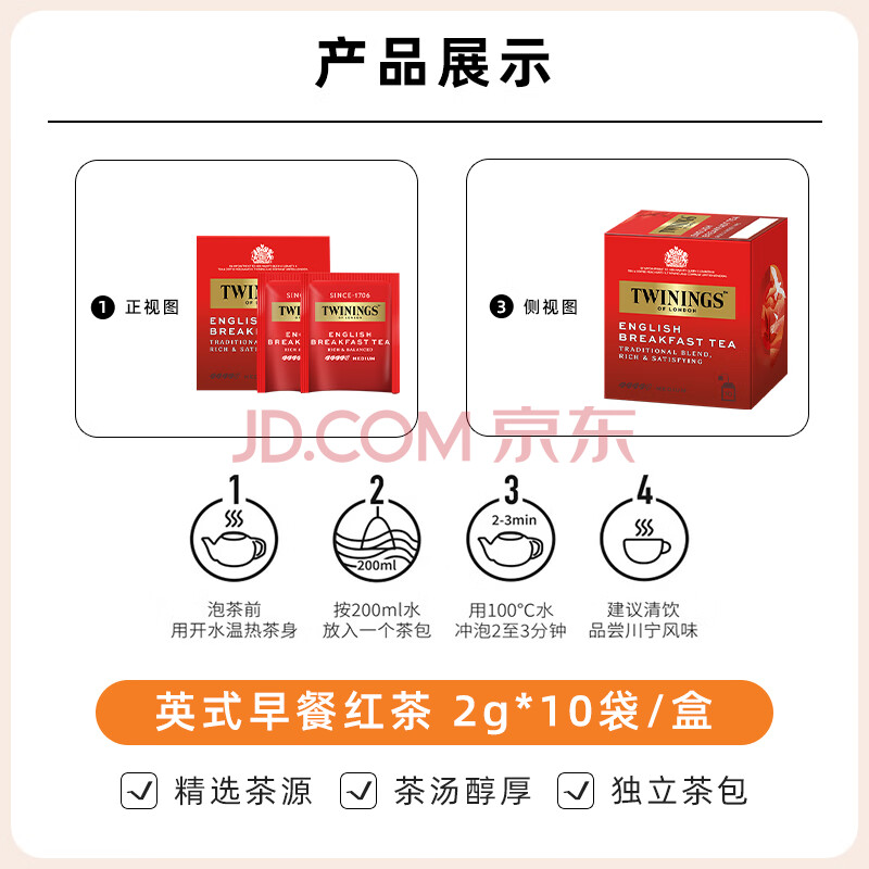 商品相册:川宁红茶 英式早餐红茶 波兰进口2g*10袋尝鲜 茶包独立袋装热泡茶第