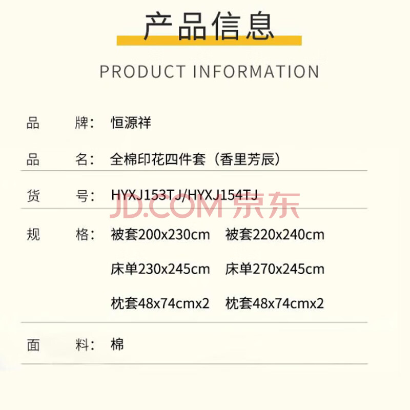 商品相册:恒源祥全棉四件套抗菌印花超软亲肤床品套件(被套2.2*2.4m)香里芳辰第