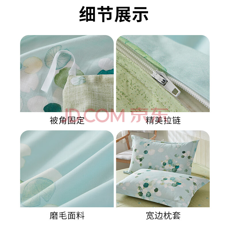 商品相册:恒源祥全棉四件套抗菌印花超软亲肤床品套件(被套2*2.3m)好运莲莲蓝色第