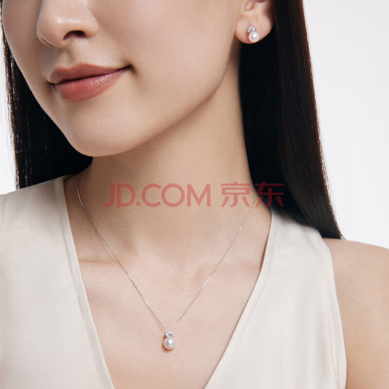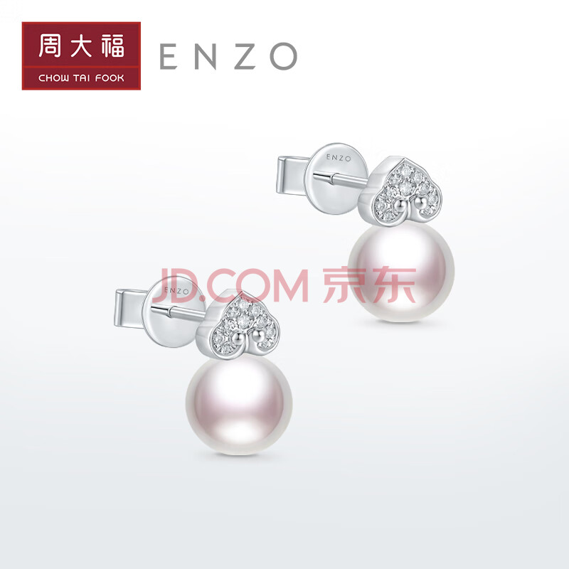 商品相册:周大福ENZO 如意系列18K金海水珍珠钻石耳钉女 EZT487生日礼物第