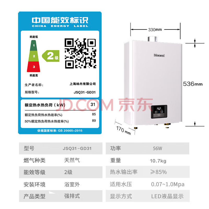 商品相册:林内(Rinnai)【小蛮腰】16升燃气热水器 智慧恒温升级CPU 低水压启动热水器上门安装 16GD31(JSQ31-GD31)第