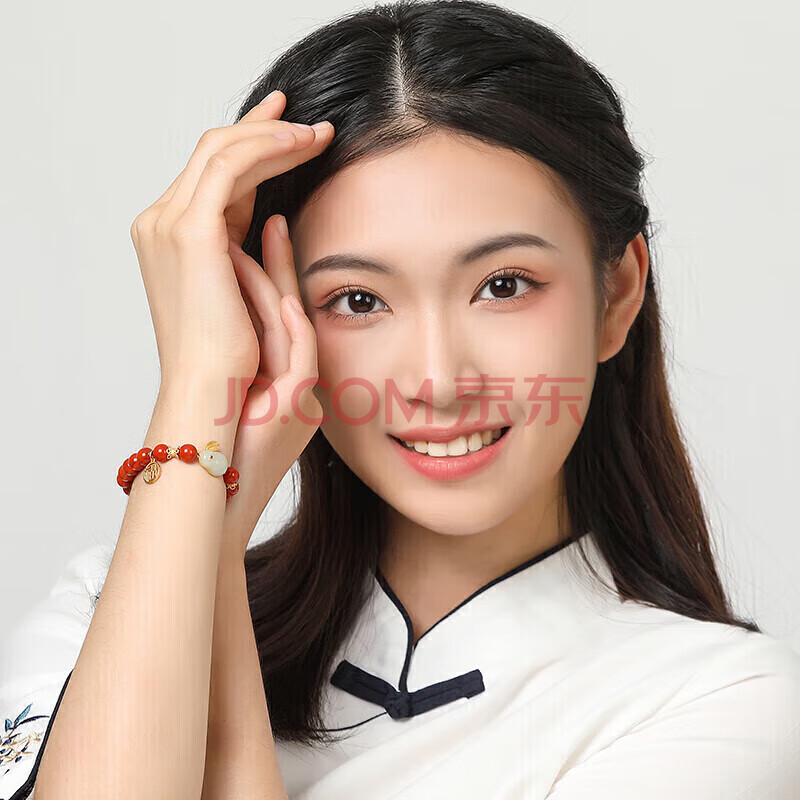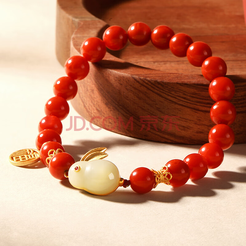 商品相册:豆蔻时光8mm南红玛瑙手串福禄和田玉兔手链古法银圆福吊坠女款第