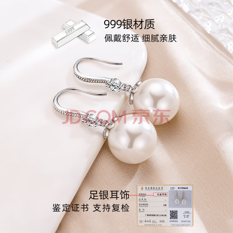 商品相册:Qlady足银仿珍珠耳环女2026新年气质高级感耳坠银饰耳钉耳饰生日礼物第