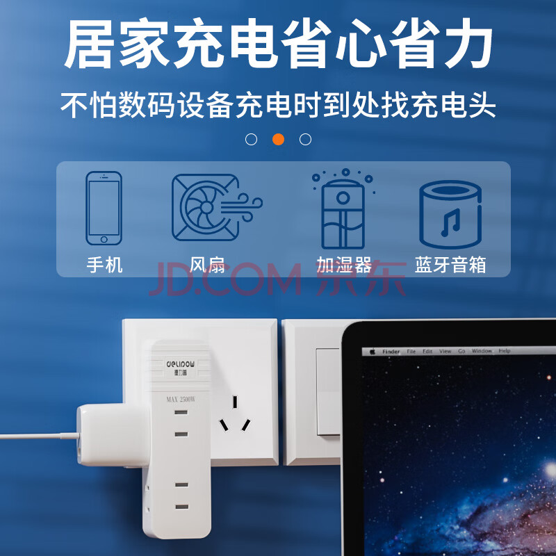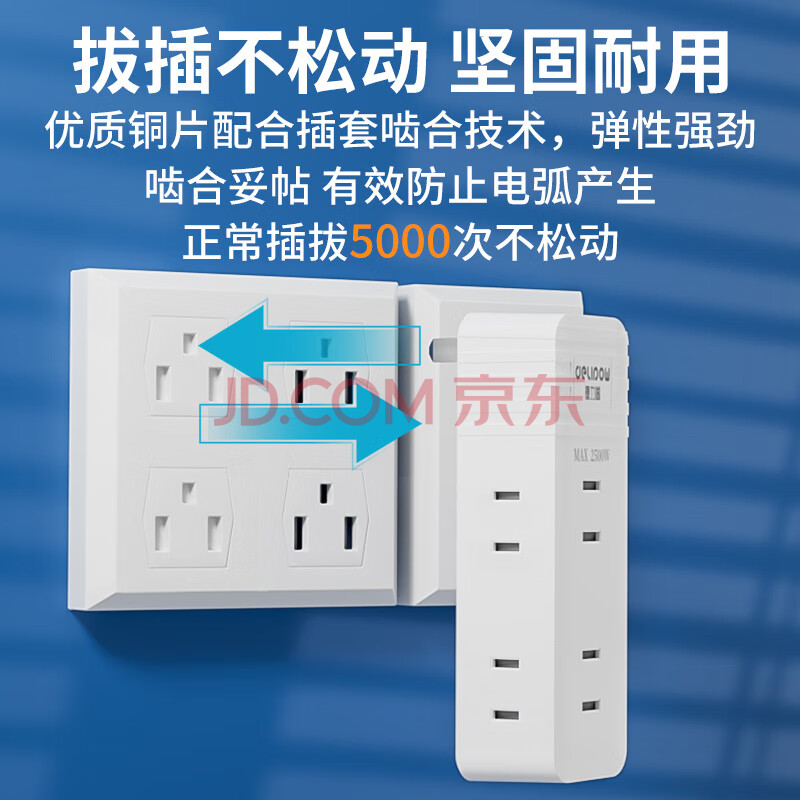 商品相册:德力普(Delipow)插排 1转6位2孔迷你便携多面立体插座转换器/无线插线板/电源转换插头第