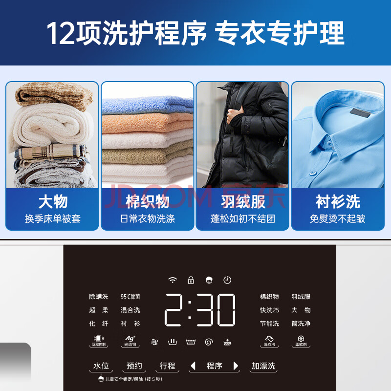 商品相册:松下(Panasonic)奕仕系列 滚筒洗衣机 全自动家用 12KG大容量 光动银除菌 3NB1E第