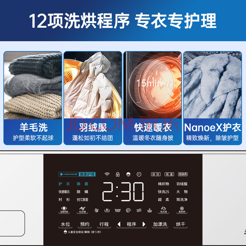 商品相册:松下(Panasonic)滚筒洗烘一体 12KG大容量洗衣机 光动银除菌 免水洗护理全自动洗衣机 XQG120-ND2Z5第